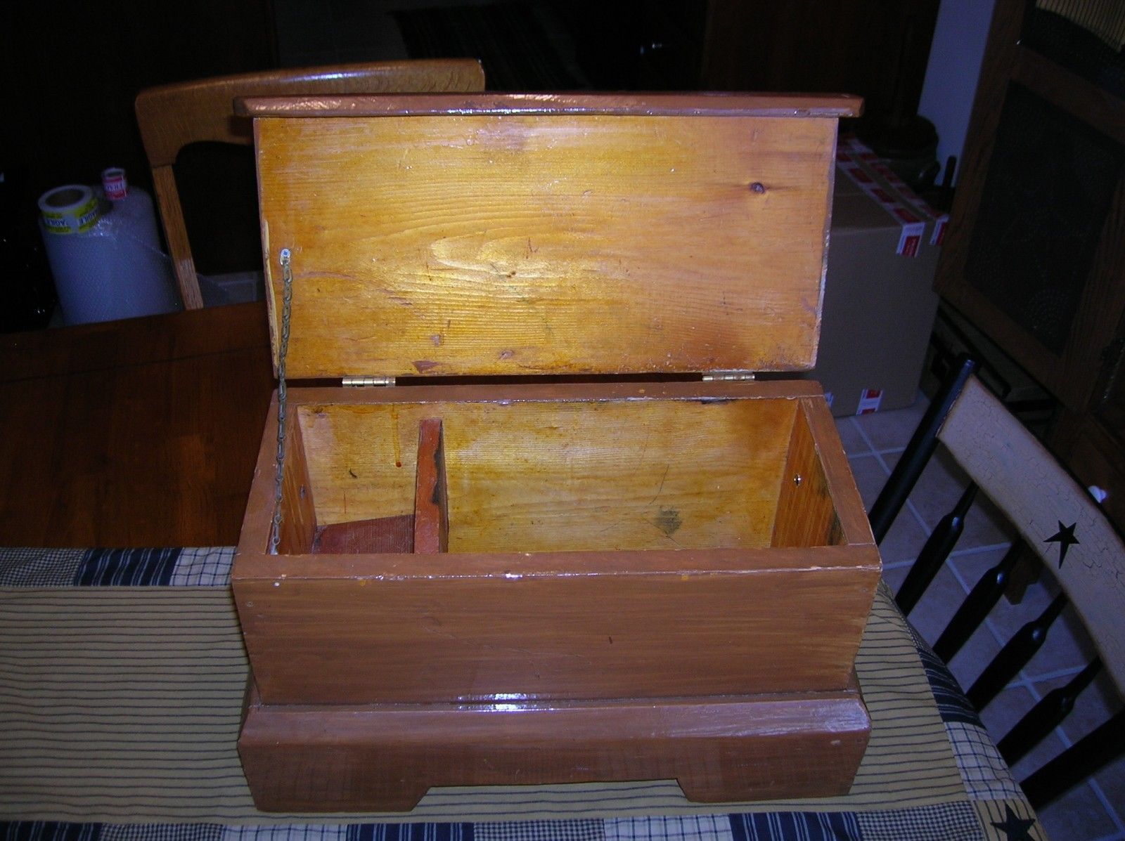 Title (ebay affiliate link): VINTAGE WOOD TRUNK CHEST DOLL STORAGE DOCUMENT BOX ORNATE BRASS HANDLES 1950''S