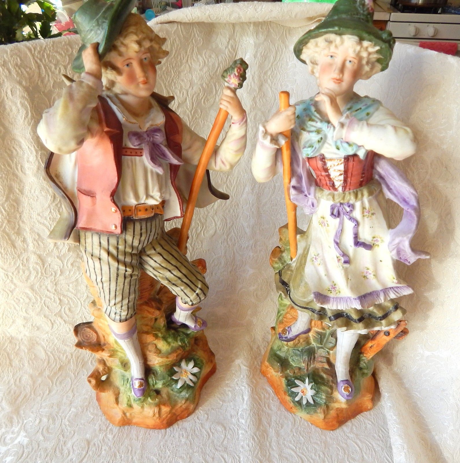 Title (ebay affiliate link): VINTAGE TYROLEAN FIGURINES - WALKING STICKS - TALL - MAN & WOMAN - EDELWEISS