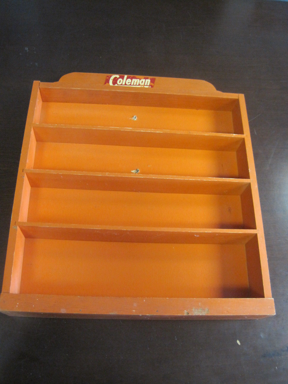 Vintage Coleman Orange Wood Parts Shelf