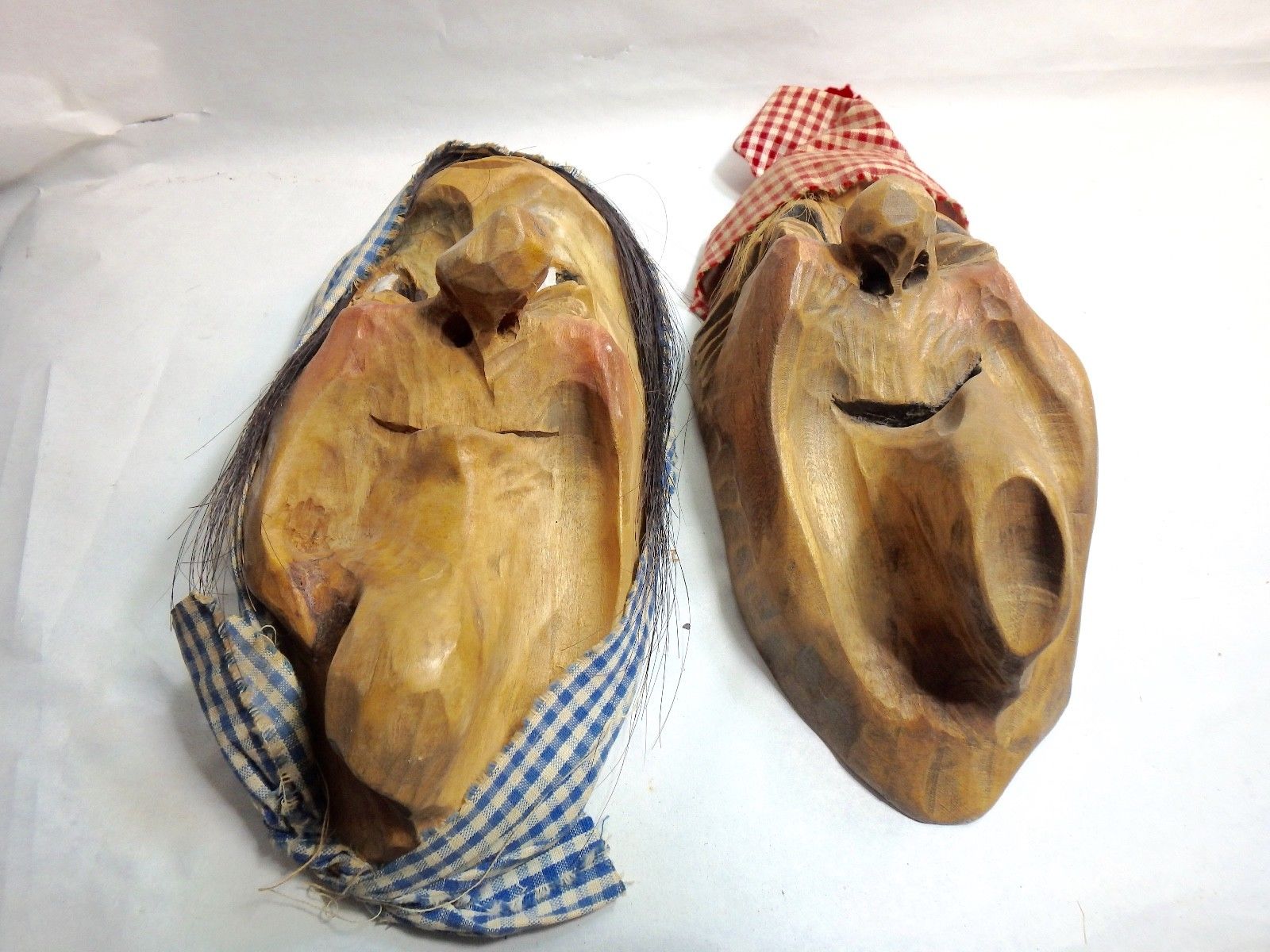 Title (ebay affiliate link): 2 orignal SWISS Masks- hand carved- 4" by 8" with hair & night caps