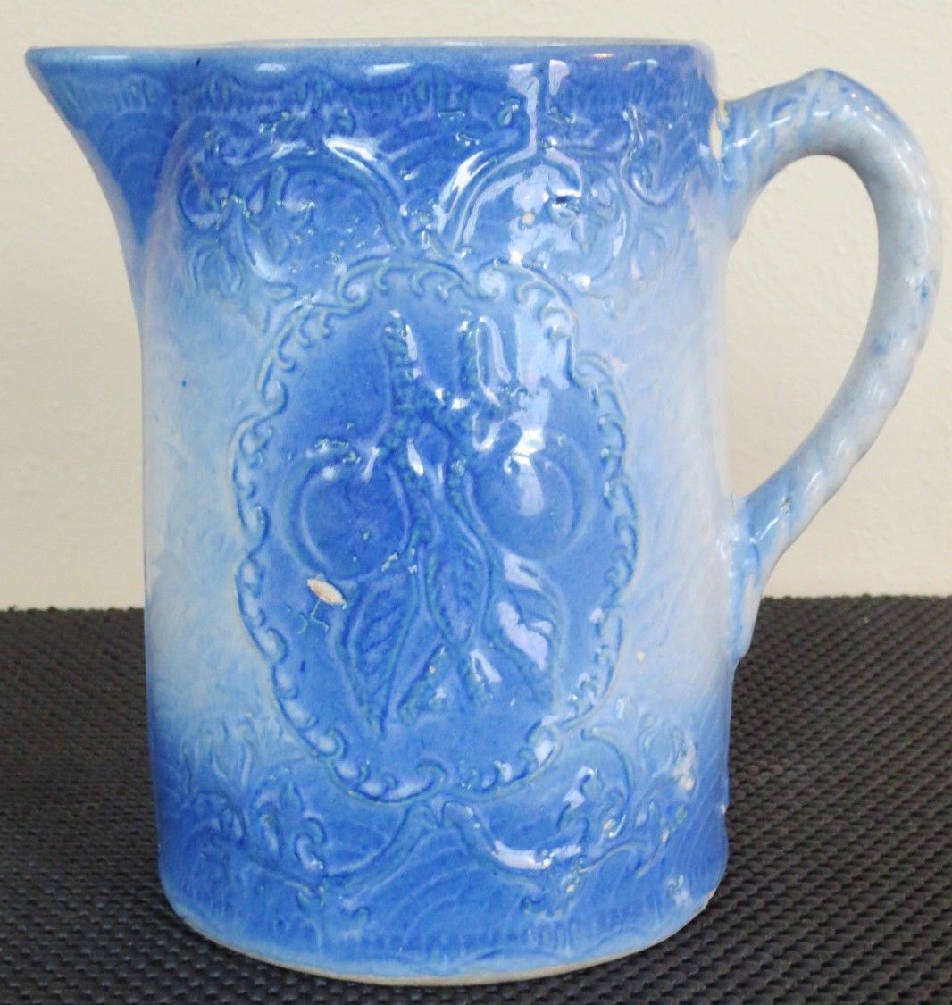 Antique McCOY Salt Glaze Stoneware Yelloware Pitcher-APRICOTS Fruit Motif