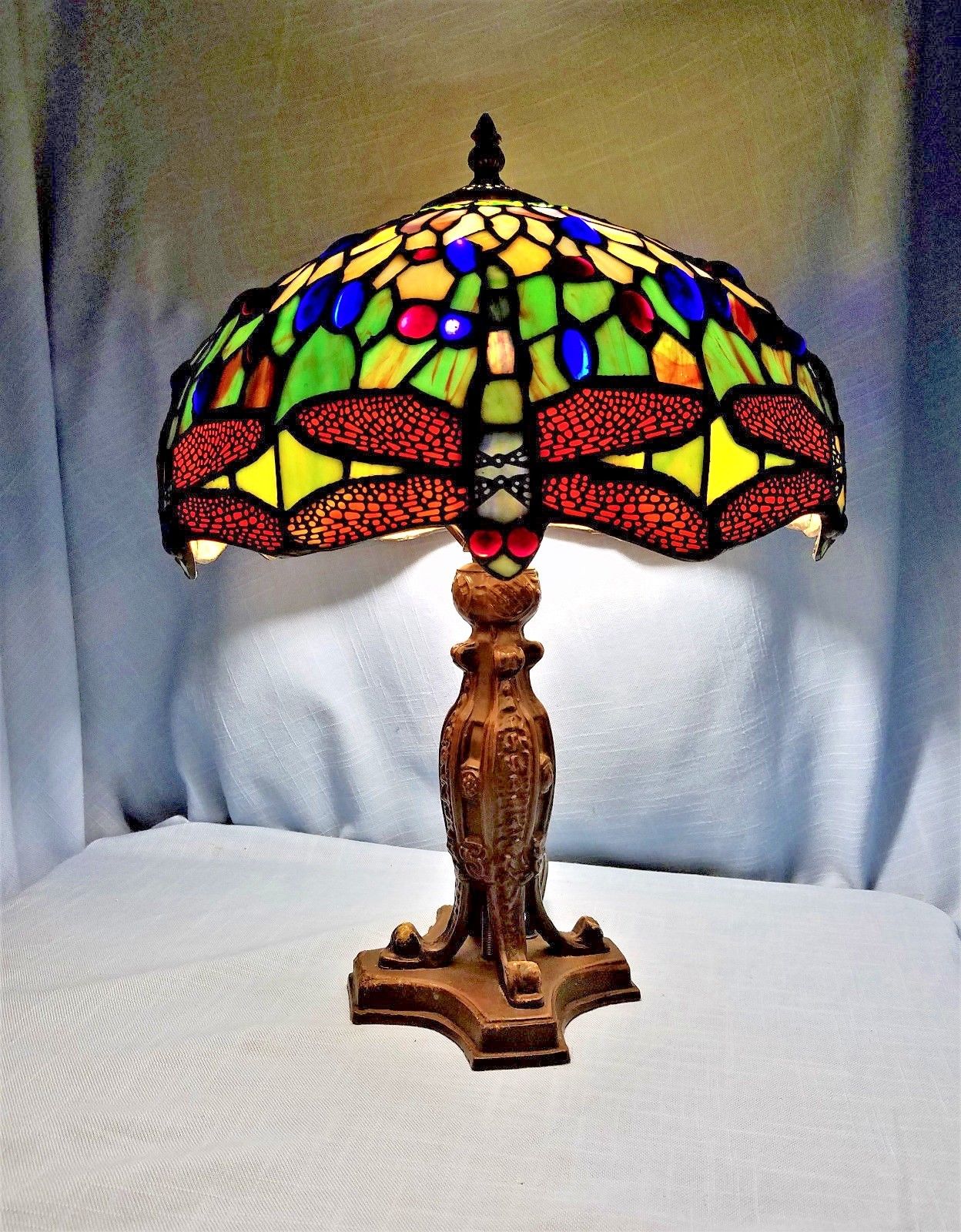 Title (ebay affiliate link): TIFFANY STYLE DRAGONFLY BUTTERFLY TABLE LAMP w LEADED SLAG GLASS PANELS MED SIZE