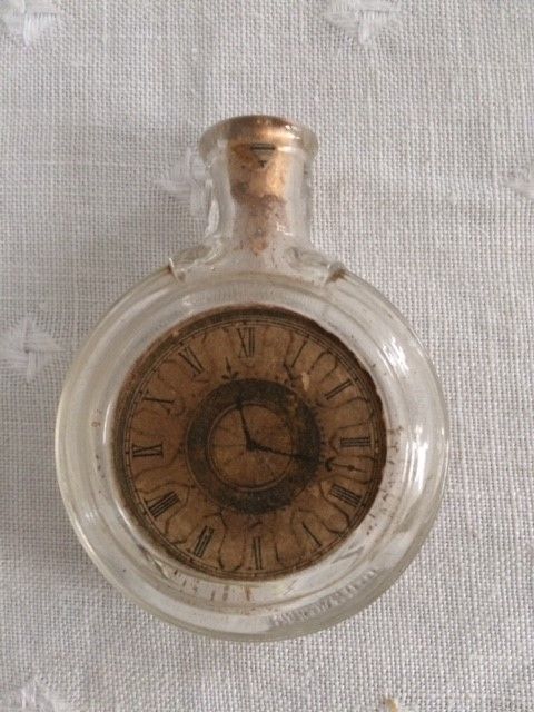 Antique Scent or Perfume Bottle with Paper Clock Face