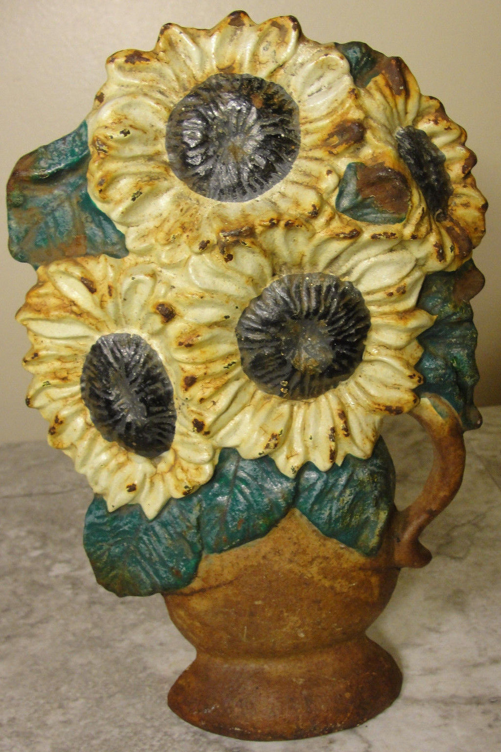 ANTIQUE CAST IRON DOORSTOP SUNFLOWERS NICE PATENA NO RESERVE
