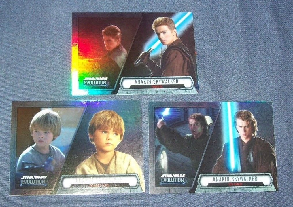 Title (ebay affiliate link): Threee Topps Star Wars Evolution Anakin Skywalker Foil Cards