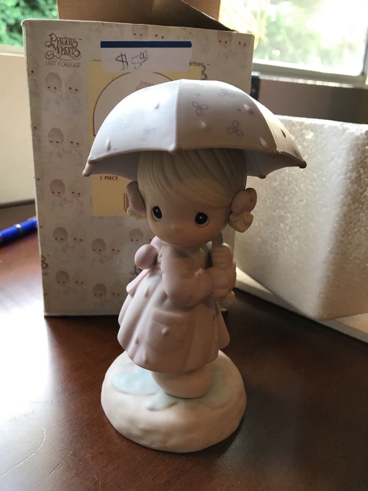 Title (ebay affiliate link): Precious Moments-April Calendar Girl-Girl Under Umbrella In Spring Rainstorm