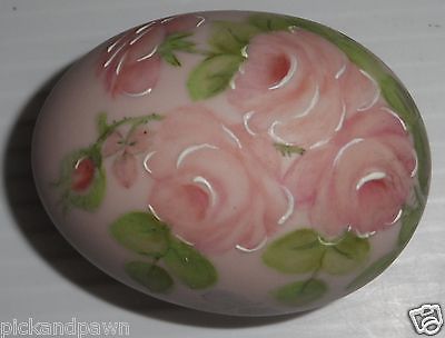 Title (ebay affiliate link): Porcelain Hand Painted Pink Egg with Rose Decoration Artist Donaghey and Stand