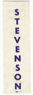 Title (ebay affiliate link): 1956 ADLAI STEVENSON OIL CLOTH CAMPAIGN PIN-BACK RIBBON