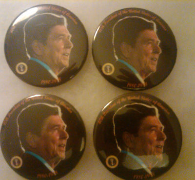 Title (ebay affiliate link): Lot of Four Beautiful 3 Inch Ronald Reagan Pinbacks
