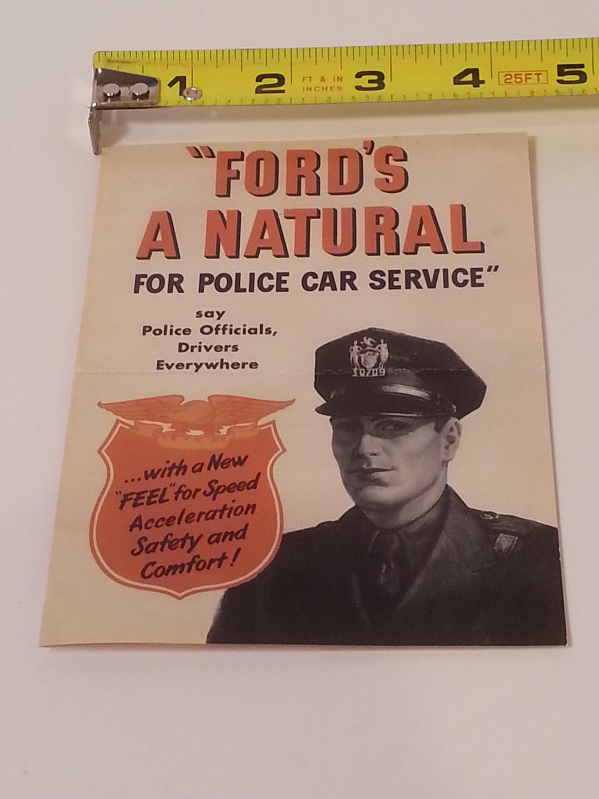 Original 1950 Ford Police Car Brochure 4 x 5 Single Fold Pocket Sales