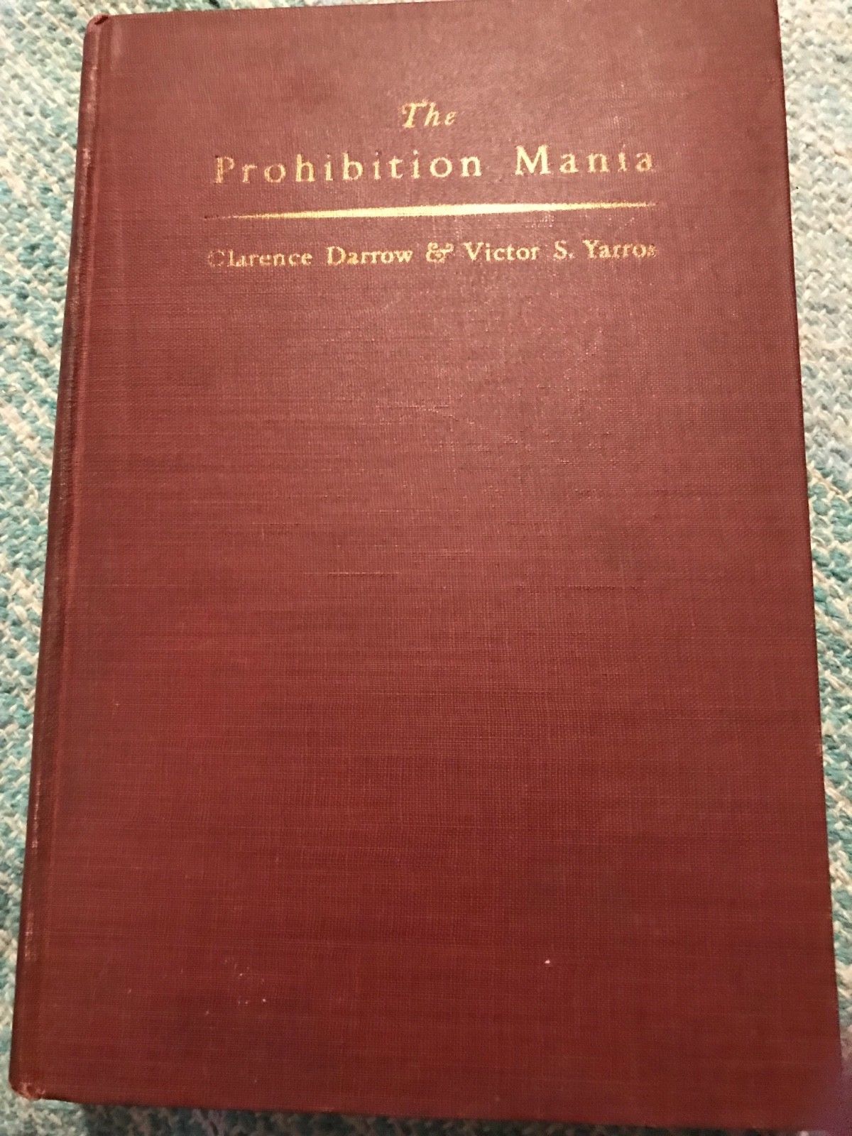 Title (ebay affiliate link): Book: The Prohibition Mania by Clarence Darrow & Victor S. Yarrow - Vintage 1927