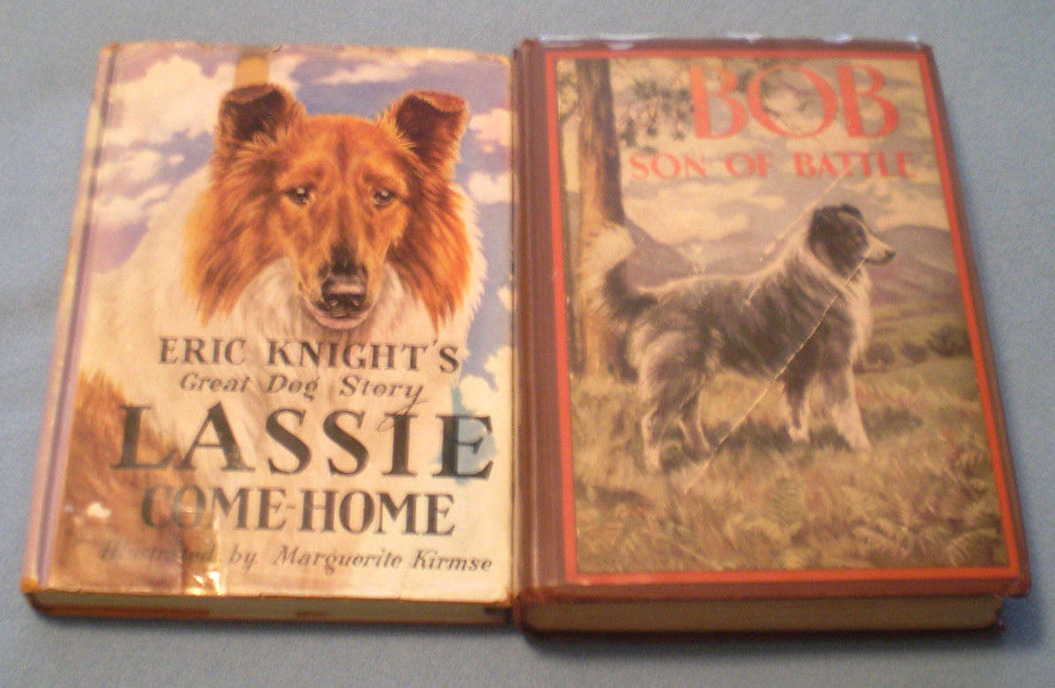 Title (ebay affiliate link): 2 Collie dog stories-Marguerite Kirmse illus.Lassie Come-Home, Bob Son of Battle