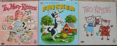 Title (ebay affiliate link): 3 Vintage Whitman Tell-a-Tale Books ~ TOO MANY KITTENS, TWO KITTENS, FRISKER