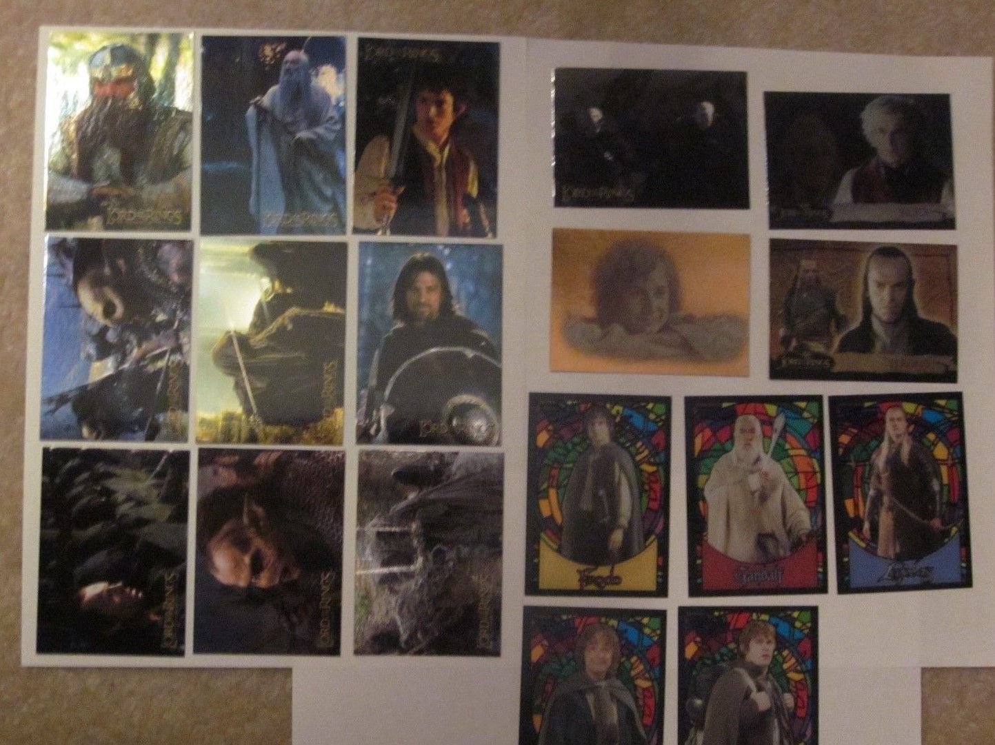 Title (ebay affiliate link): Lot of 18 Lord of the Rings cards LOTR FOTR foil set Evolution stained glass A B