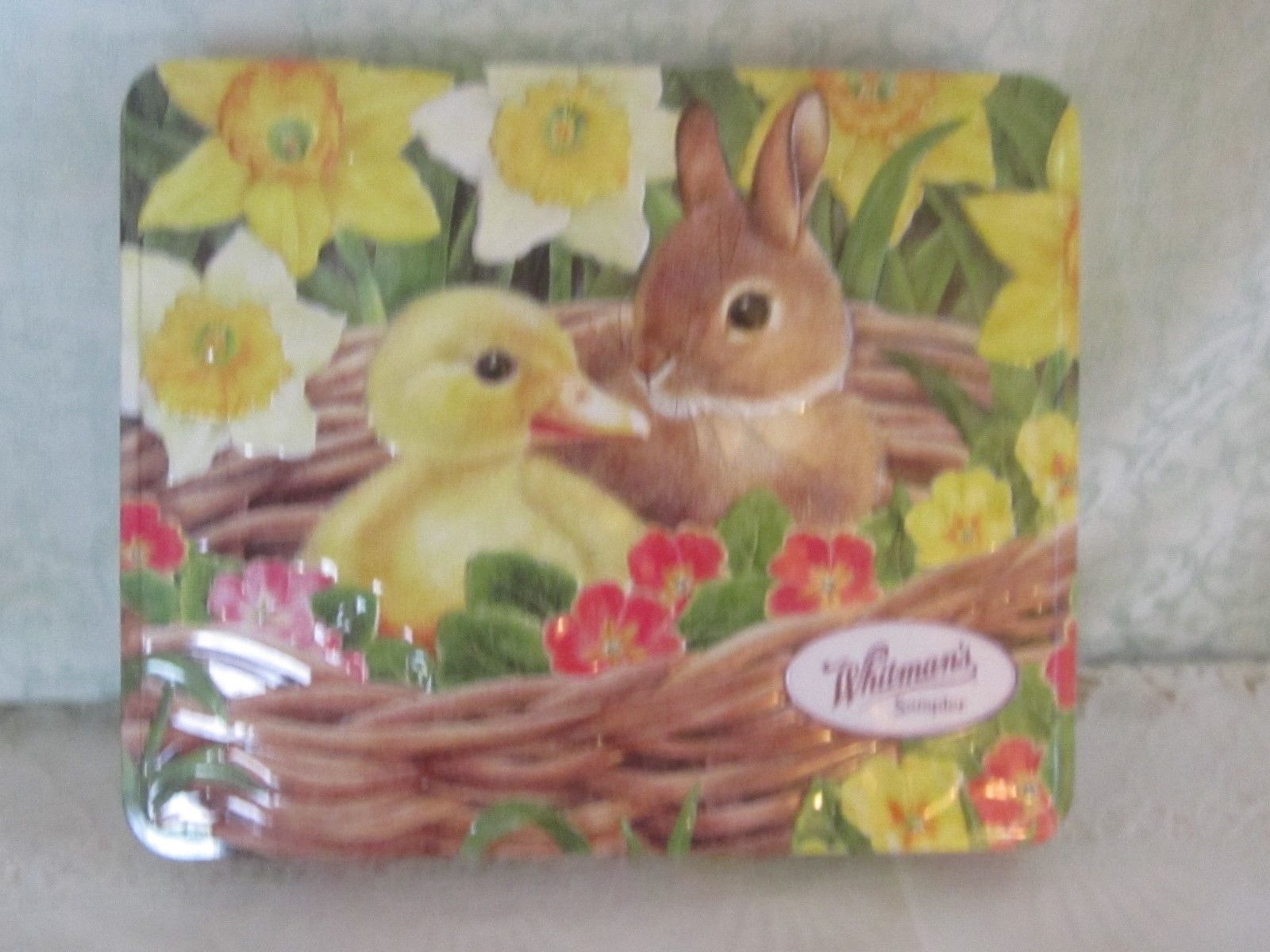 Title (ebay affiliate link): 1993 Whitman''s Sampler Candies Easter Embossed Hinged Tin Chick And Rabbit
