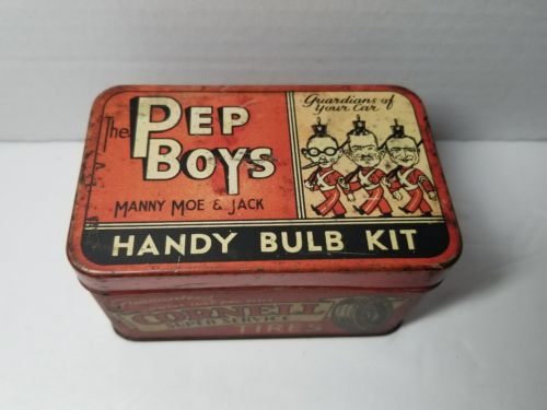 Title (ebay affiliate link): Vintage 1940''s Pep Boys Tires Battery Handy Bulb Kit Metal Box PLUS BONUS TIN