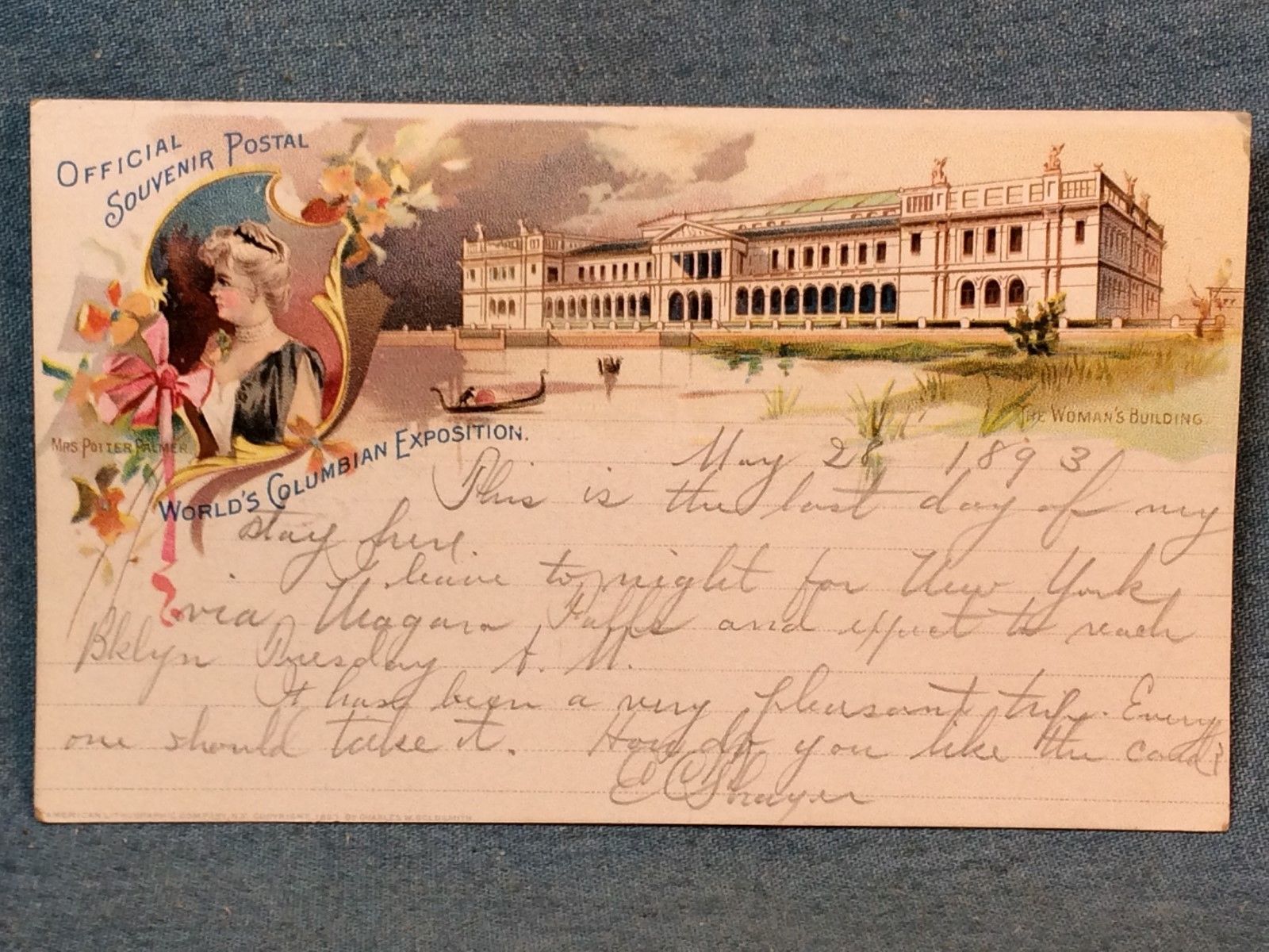 ANTIQUE 1893 WORLDS COLUMBIAN EXPOSITION SOUVENIR POSTCARD WOMANS BUILDING CLEAN