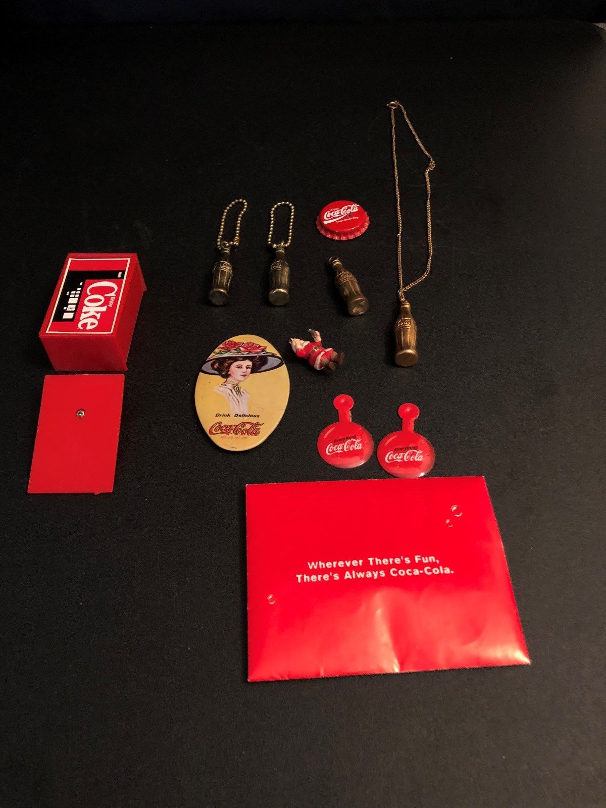 Title (ebay affiliate link): Vintage Coca Cola Mirror, Key chains, Pin, etc