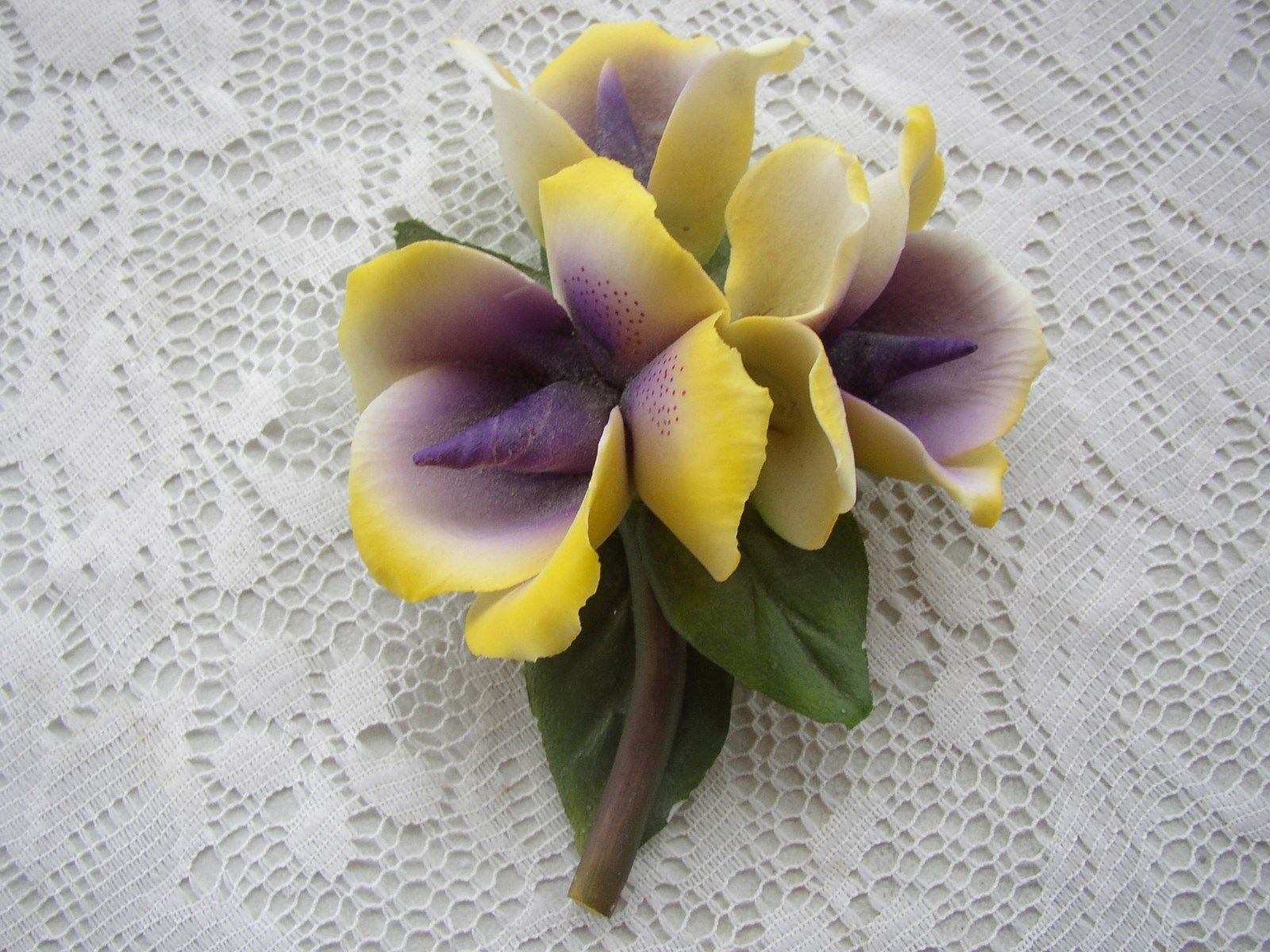 Title (ebay affiliate link): VINTAGE CAPODIMONTE FLOWER WITH STEM ~ SIGNED + ( N CROWN ) + MADE IN ITALY