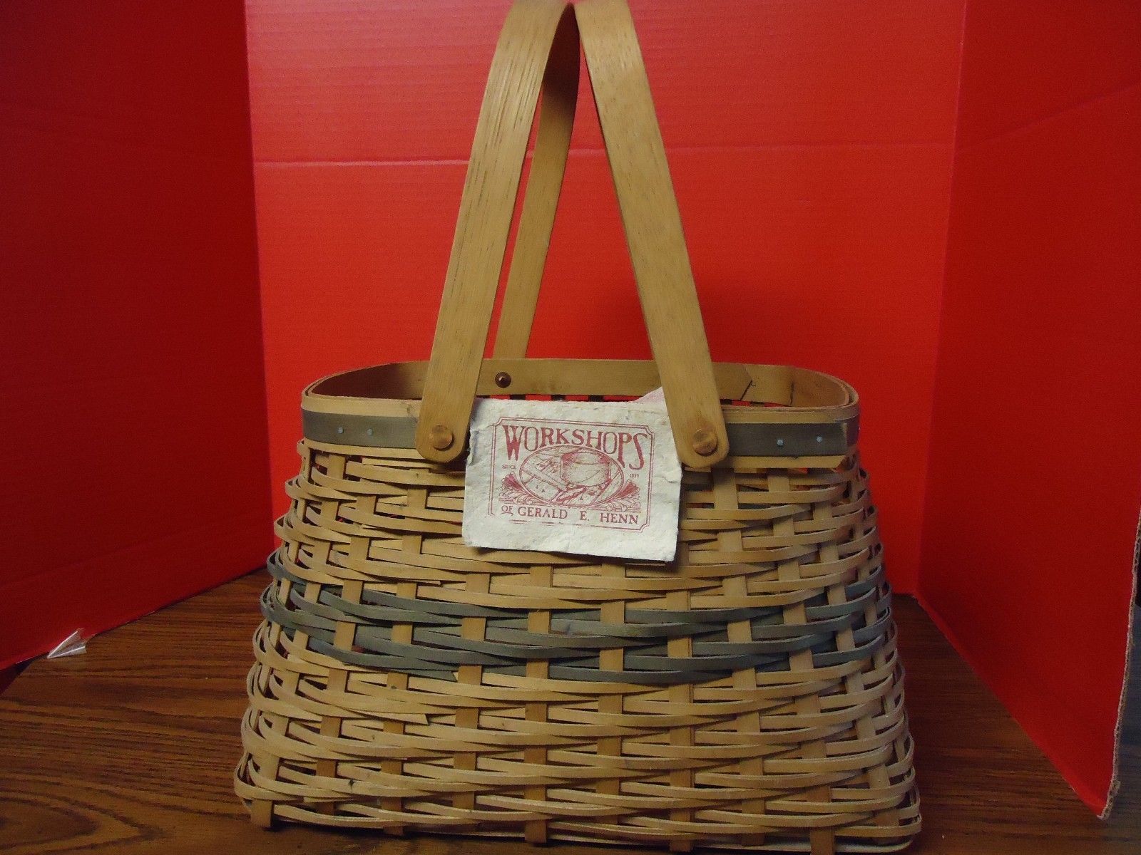 Title (ebay affiliate link): HENN WORKSHOPS Double Handled LARGE BASKET w/ Gray Accents SIGNED