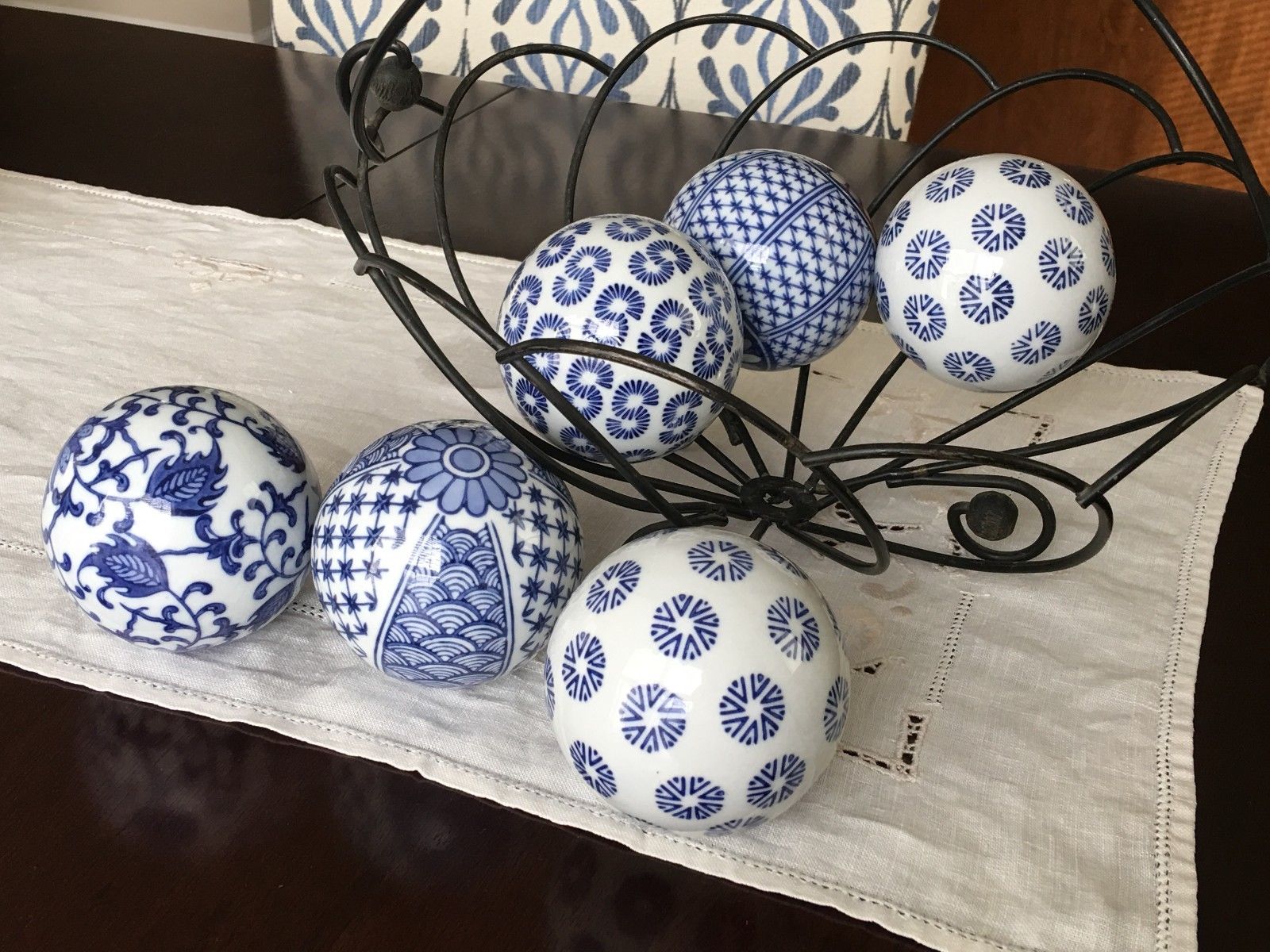 Title (ebay affiliate link): SET OF (6) BLUE AND WHITE PORCELAIN CARPET BALLS (3")