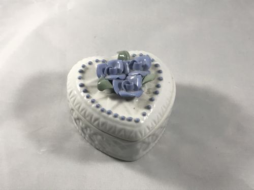 Title (ebay affiliate link): White Heart with Blue roses trinket box- Percelain