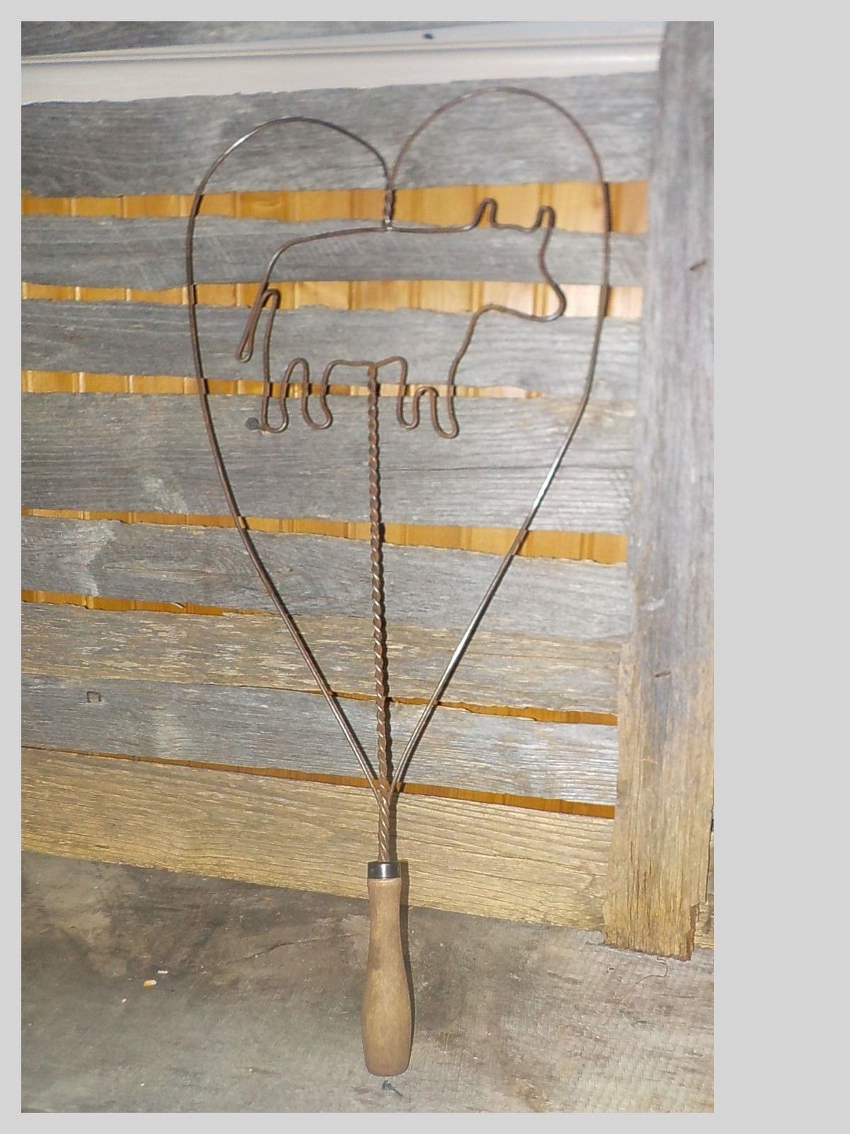 VINTAGE METAL WITH WOOD HANDLE RUG BEATER-COW DESIGN