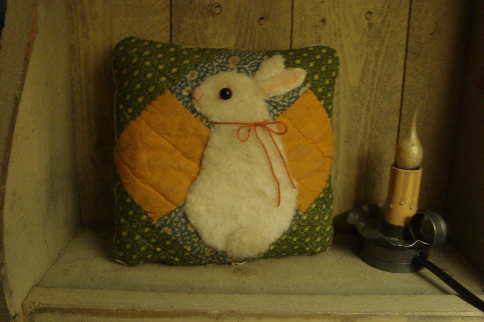 Title (ebay affiliate link): PRIMITIVE RABBIT ON ANTIQUE QUILT PILLOW ~ ORIGINAL FOLK ART