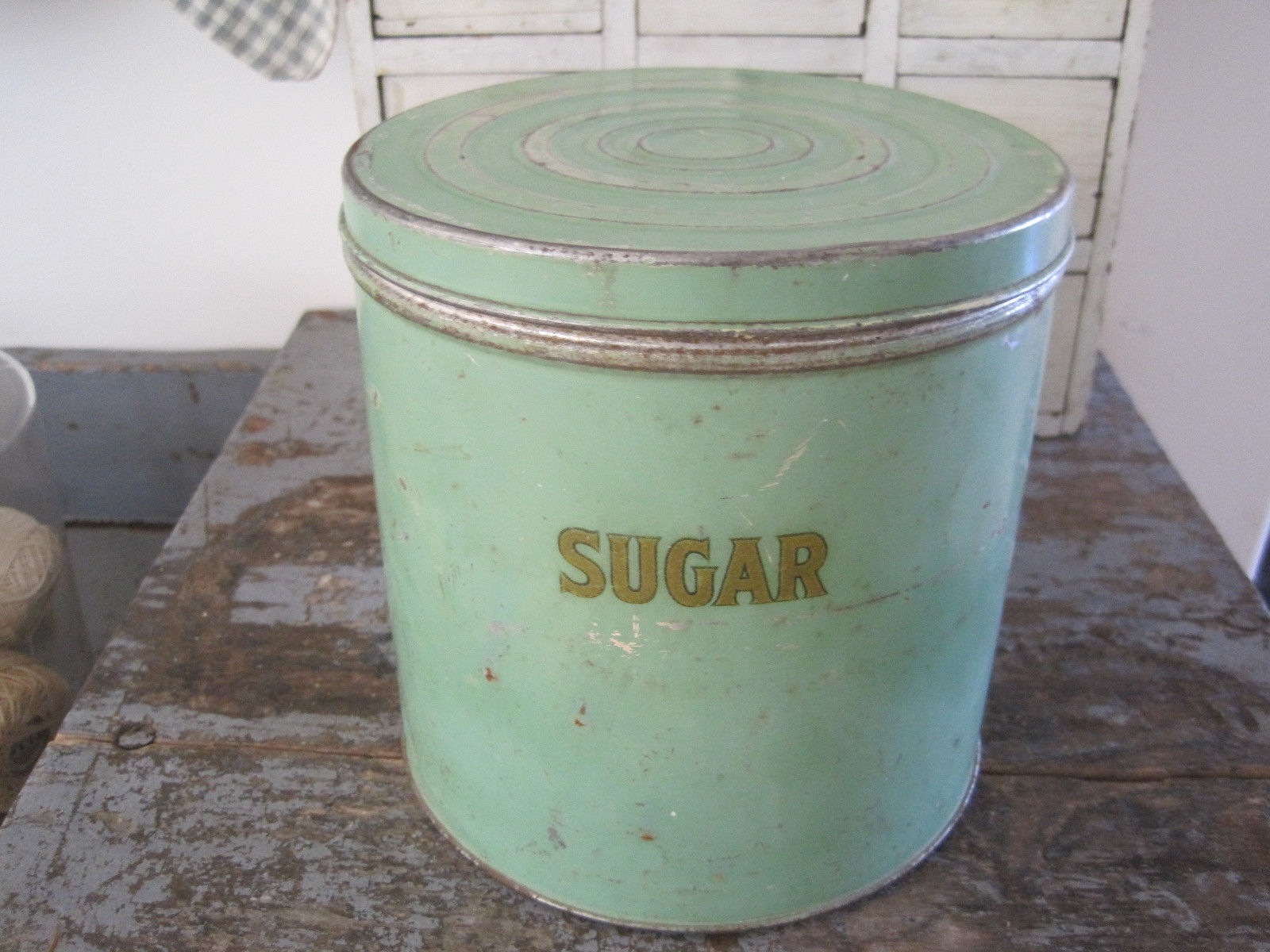 Title (ebay affiliate link): Old Vintage Primitive Original Green Paint Tin Canister SUGAR American Find