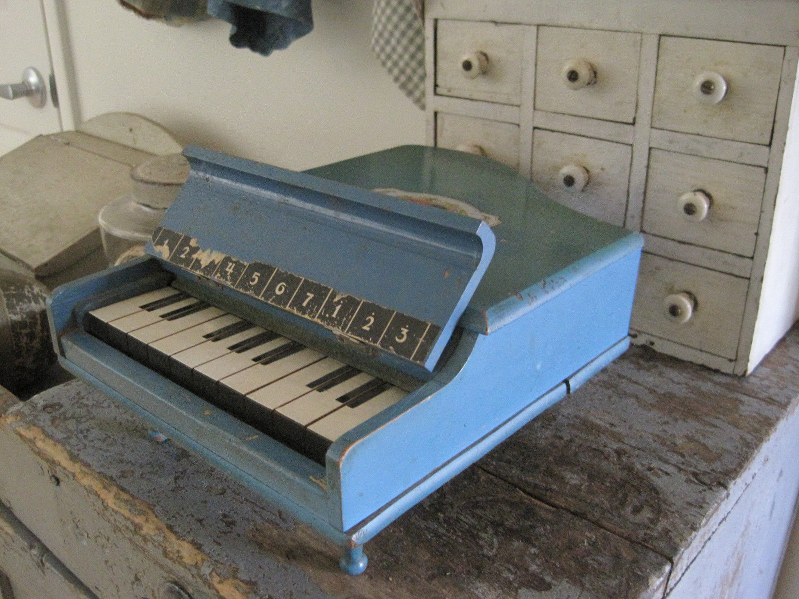 Title (ebay affiliate link): Vintage Primitive Original Blue Paint Child''s Toy Wood Baby Grand Piano AAFA