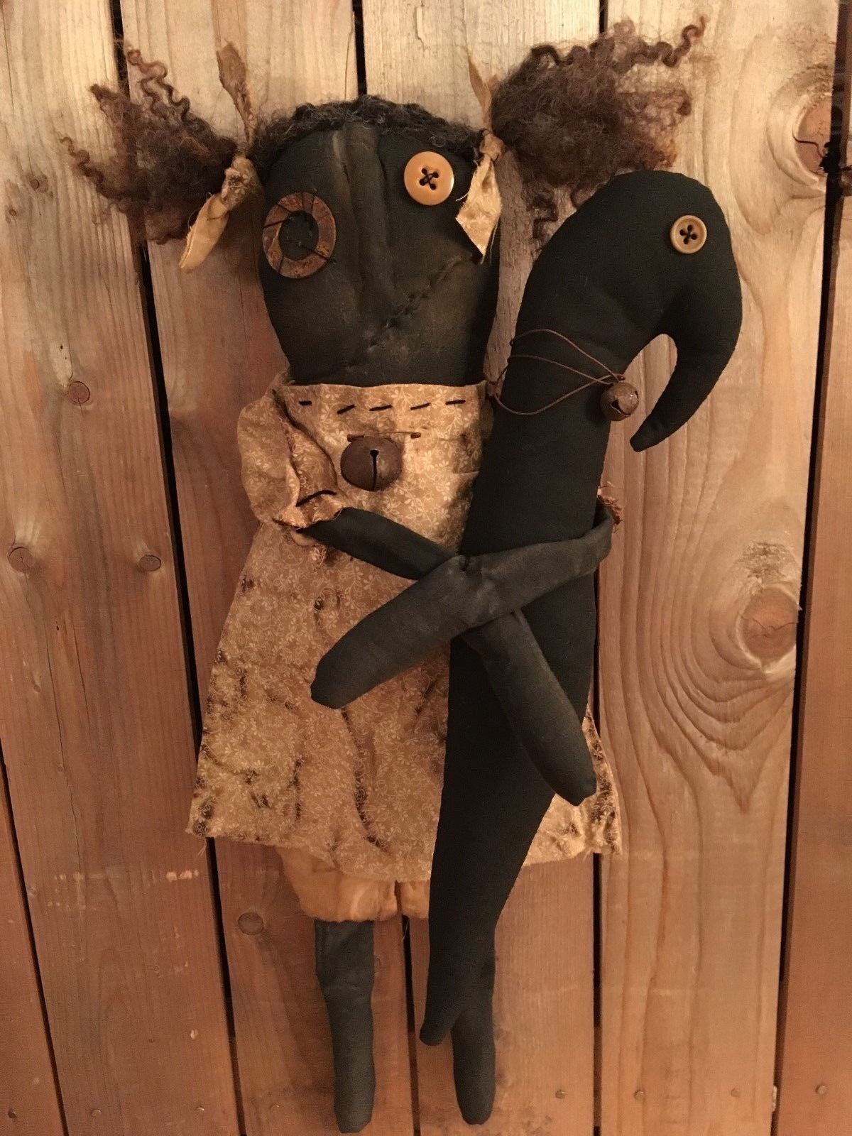 Title (ebay affiliate link): Extreme Primitive Folk Art Doll w Crow Doll Calico Rusty Bell **Signed/Dated
