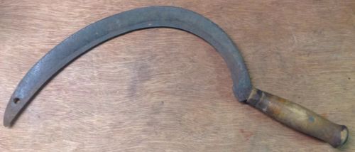 Title (ebay affiliate link): ANTIQUE FARM REAPER SICKLE SCYTHE CORN CUTTER WALL HANGER USA FARM TOOL