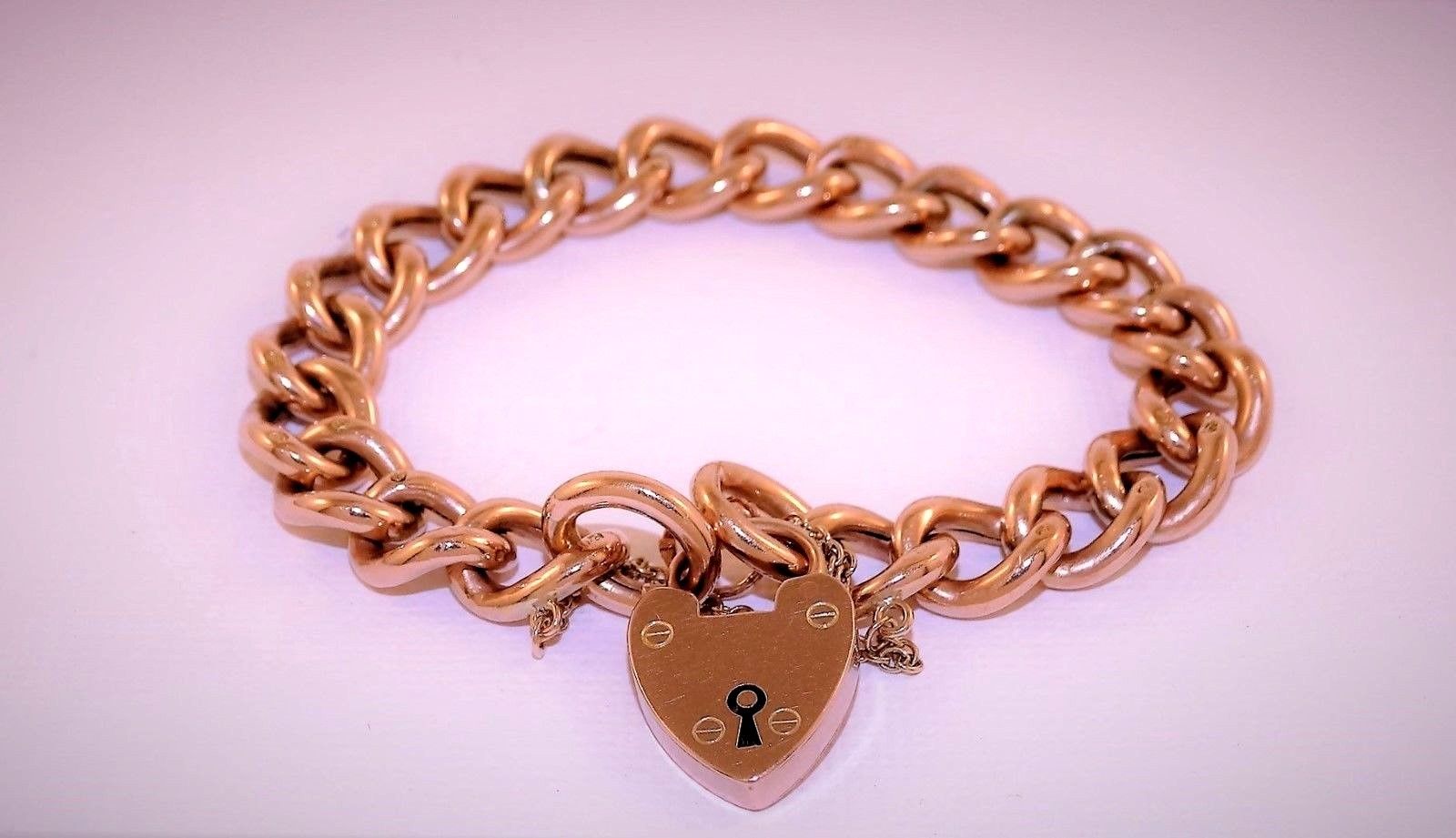 Title (ebay affiliate link): Antique 9ct Rose Gold, 375 English Hallmarks, Padlock Bracelet ca1898 - 20cms