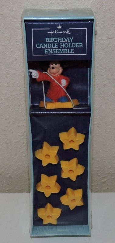 Title (ebay affiliate link): MICKEY MOUSE BIRTHDAY CANDLE HOLDER ENSEMBLE UNUSED IN PACKAGE