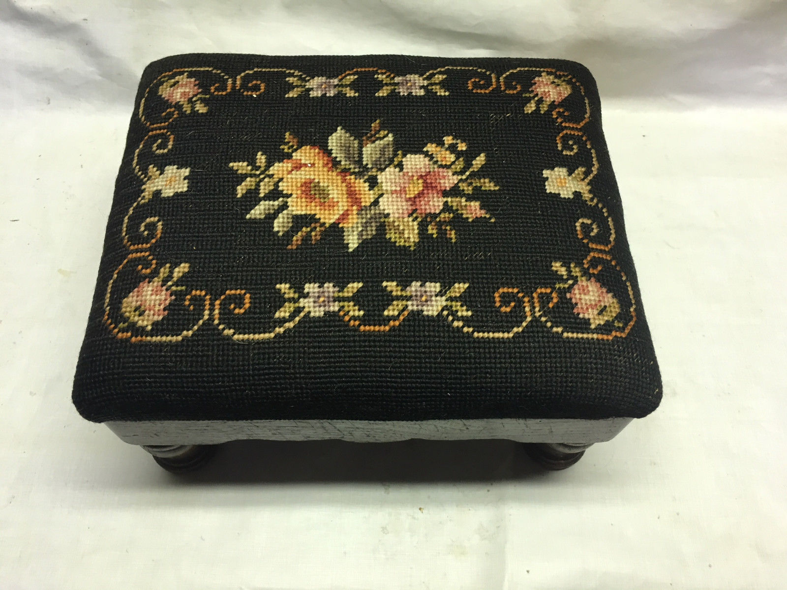 Title (ebay affiliate link): Antique/Vintage Rose Needlepoint Foot stool Mahogany