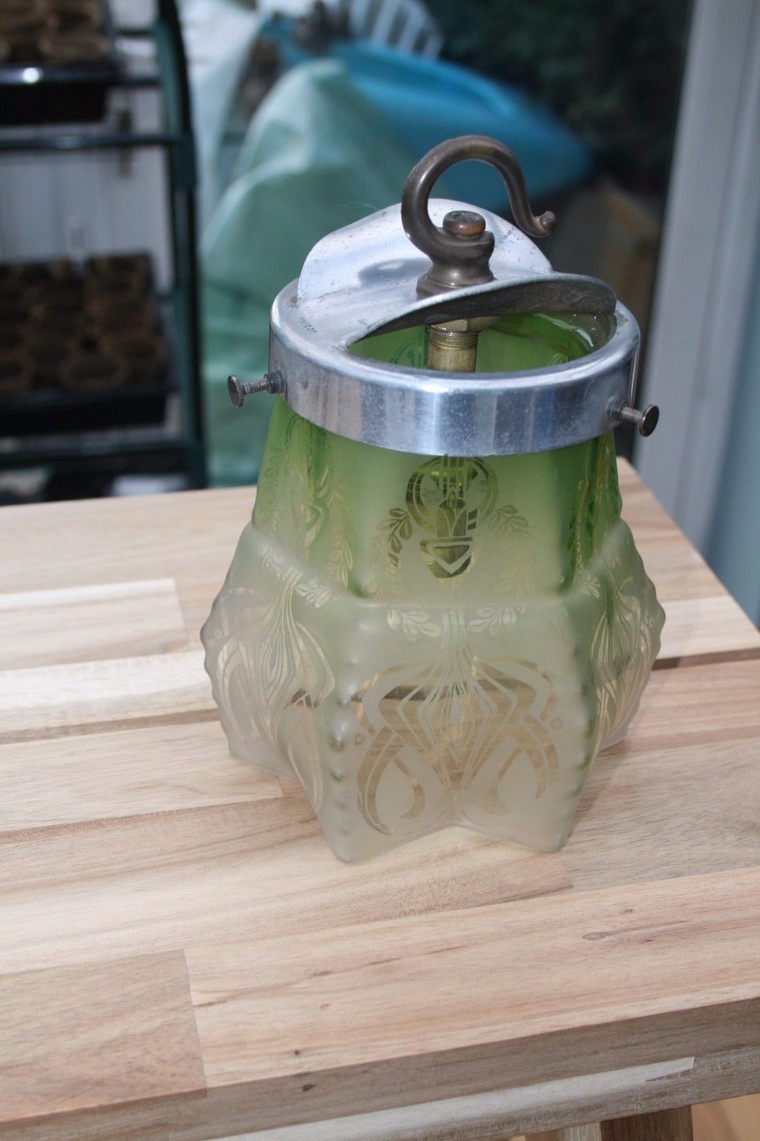 Title (ebay affiliate link): Victorian Edwardian Converted Art Nouveau Gas lamp green glass beautiful rare
