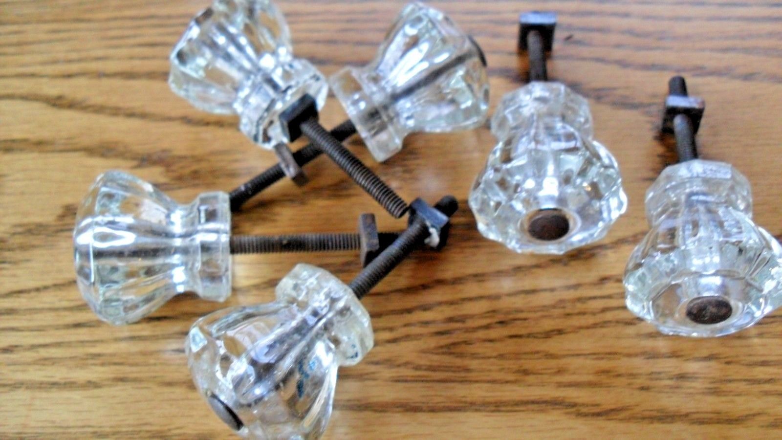 Title (ebay affiliate link): 6 VINTAGE CLEAR GLASS DRESSER KNOBS - ANTIQUE FURNITURE PULLS
