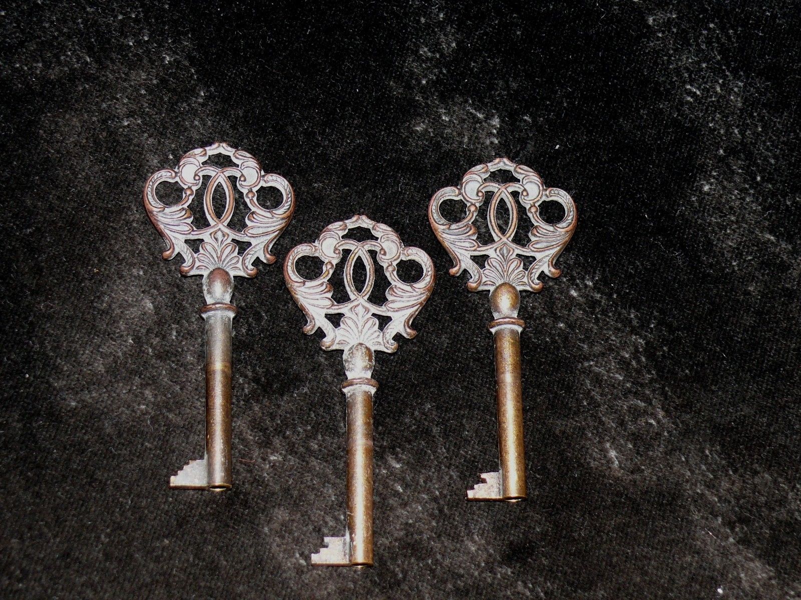 Title (ebay affiliate link): Three Ornate Antique Spanish Brass Bronze skeleton keys for furniture