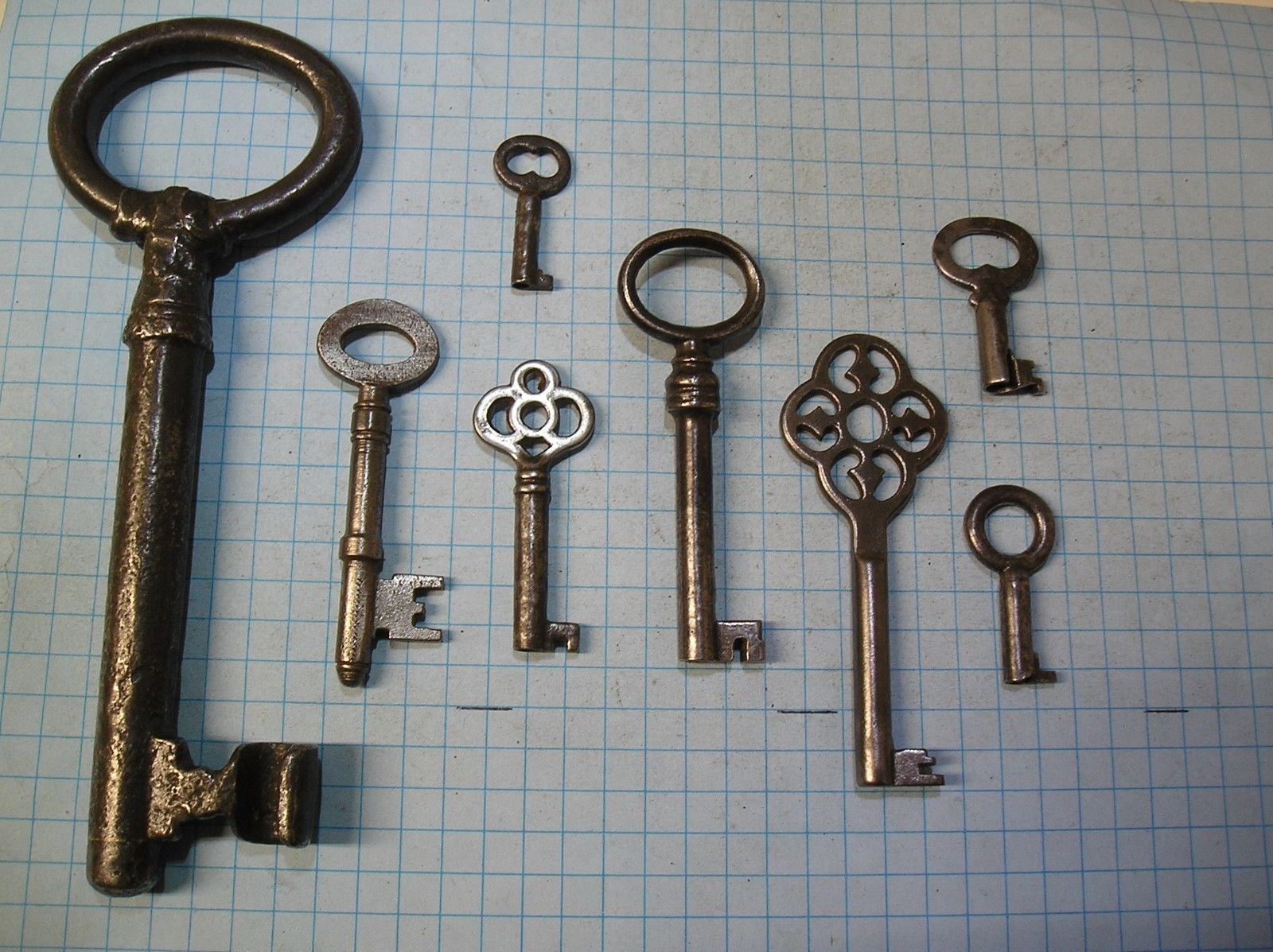 Title (ebay affiliate link): LOT OF 8 ANTIQUE SKELETON, FURNITURE, BARREL, CABINET AND OLD LOCK KEYS