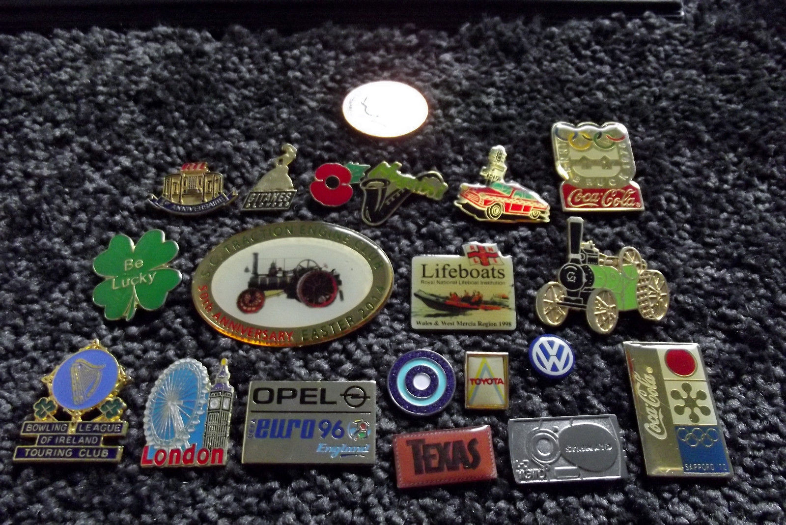 Title (ebay affiliate link): JOB LOT 19 X MIXED TRANSPORT/CAR/COCA COLA ETC COLLECTABLE PIN BADGES