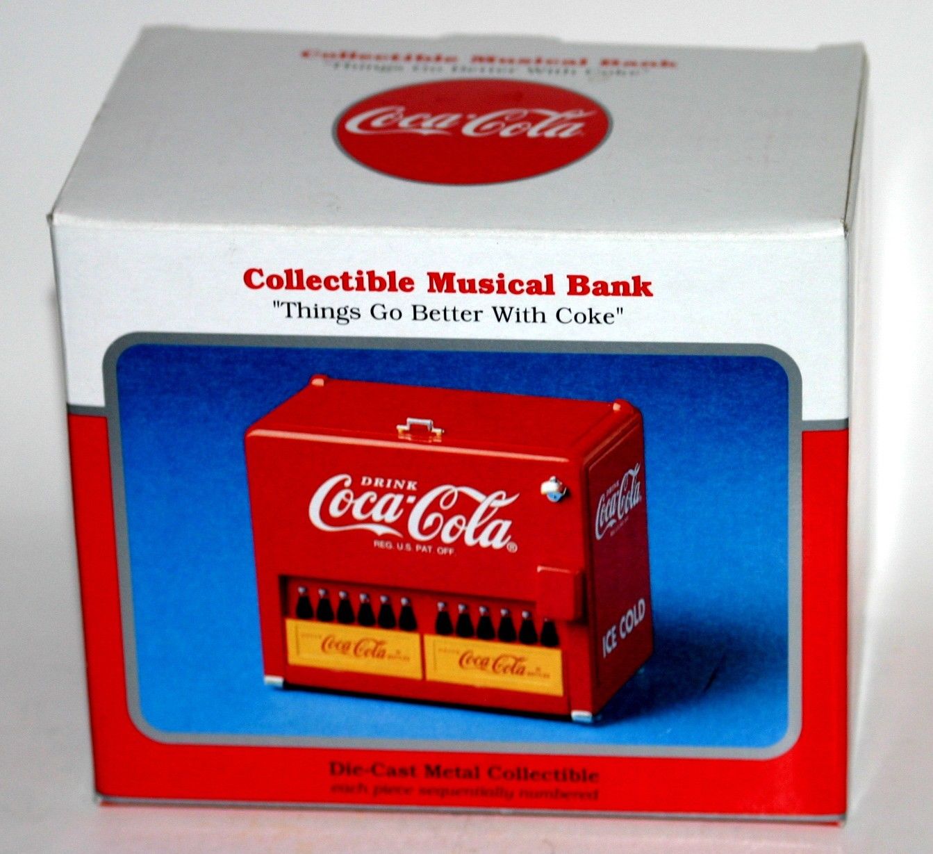 Title (ebay affiliate link): Coca-Cola Die-Cast Metal Musical Bank 1997 Vending Machine Cooler New
