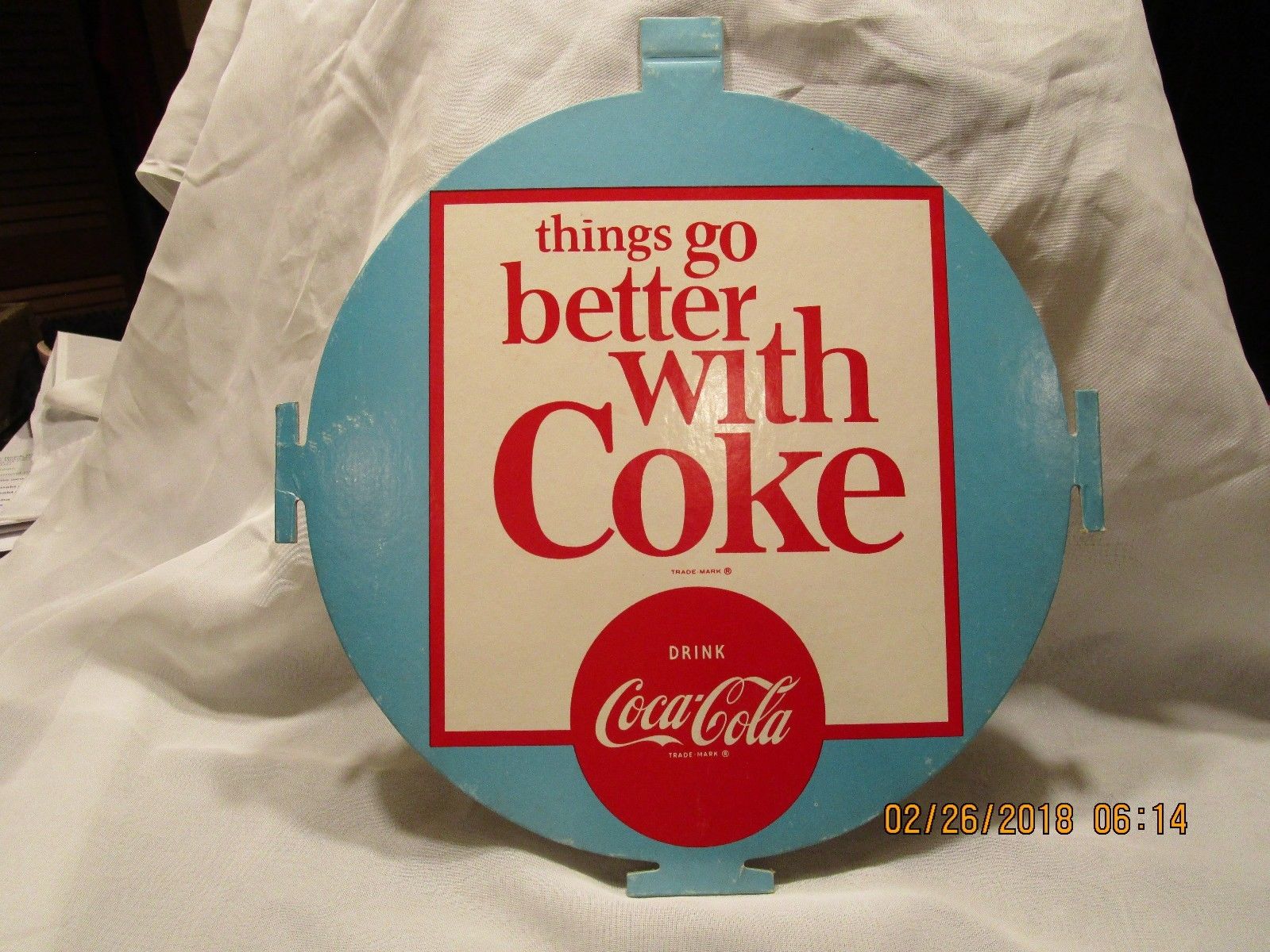Title (ebay affiliate link): VINTAGE ROUND COKE SIGN THINGS GO BETTER WITH COKE!! NICE.