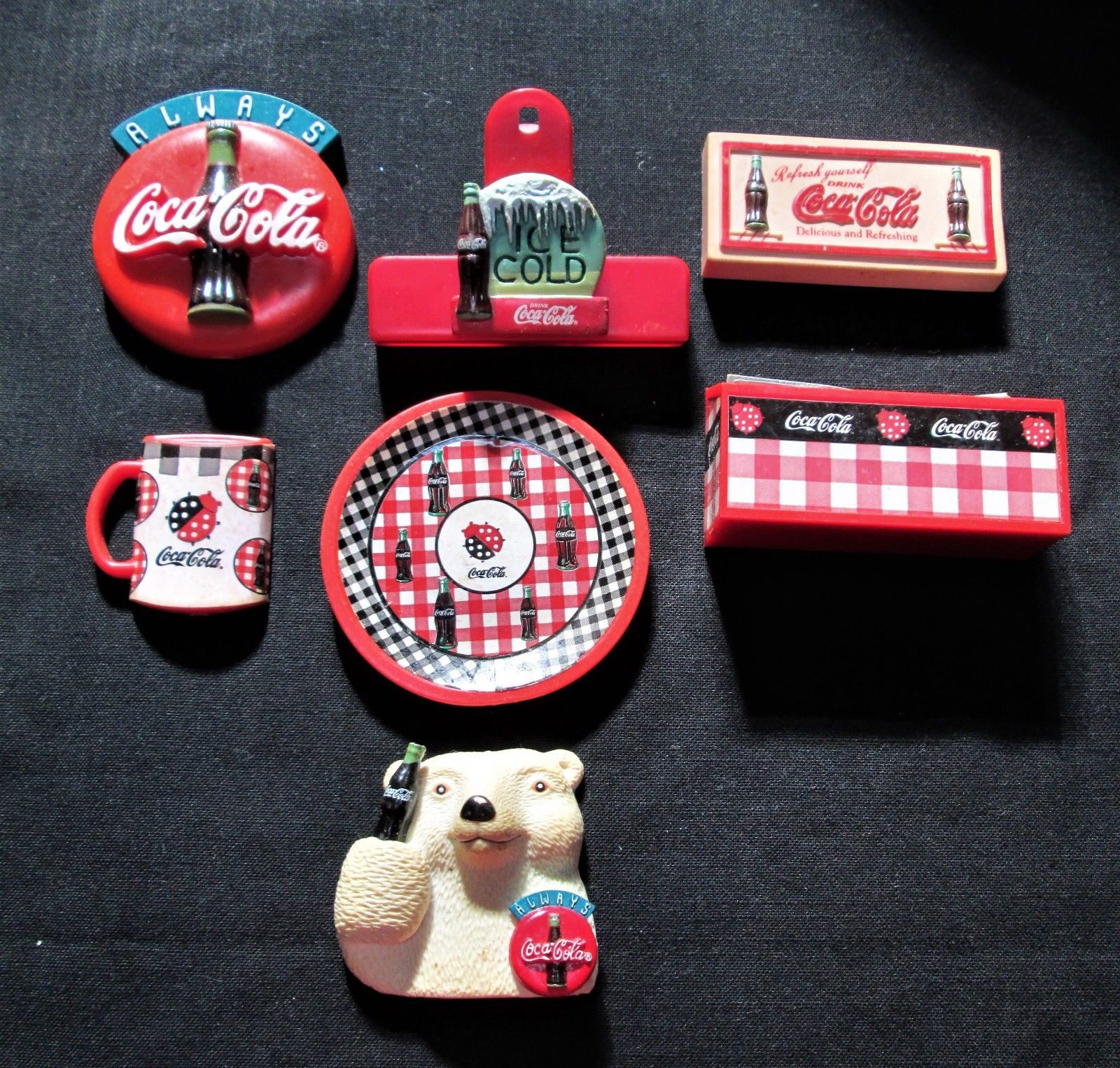 Title (ebay affiliate link): Lot of 7 Vintage Coca Cola/Coke magnets from 1995-1999 polar bear, ladybug,clip