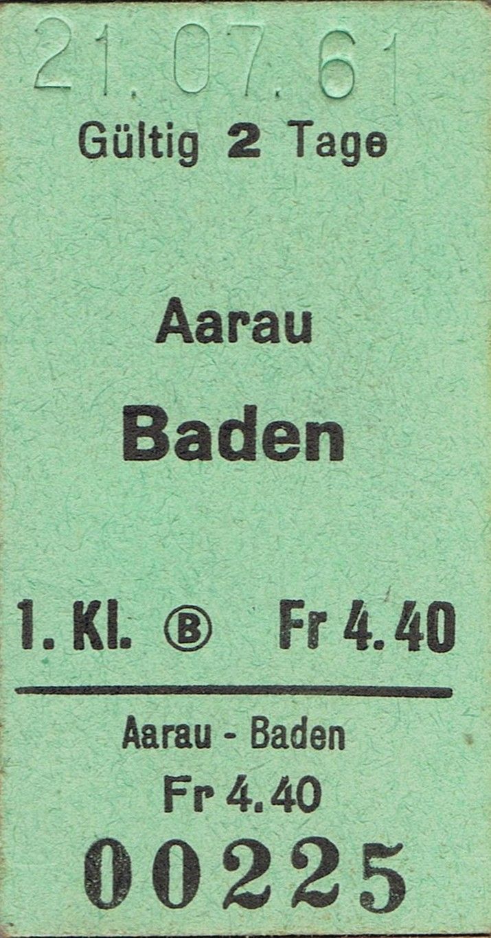 Title (ebay affiliate link): Railway tickets Switzerland Aarau to Baden first class single 1961