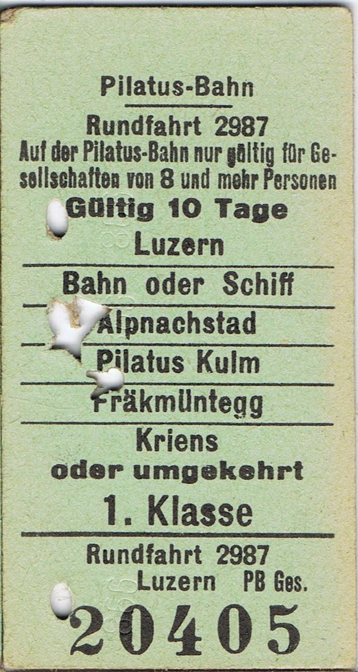 Title (ebay affiliate link): Railway tickets Switzerland Pilatus-Bahn Luzurn Kriens first class round trip ?