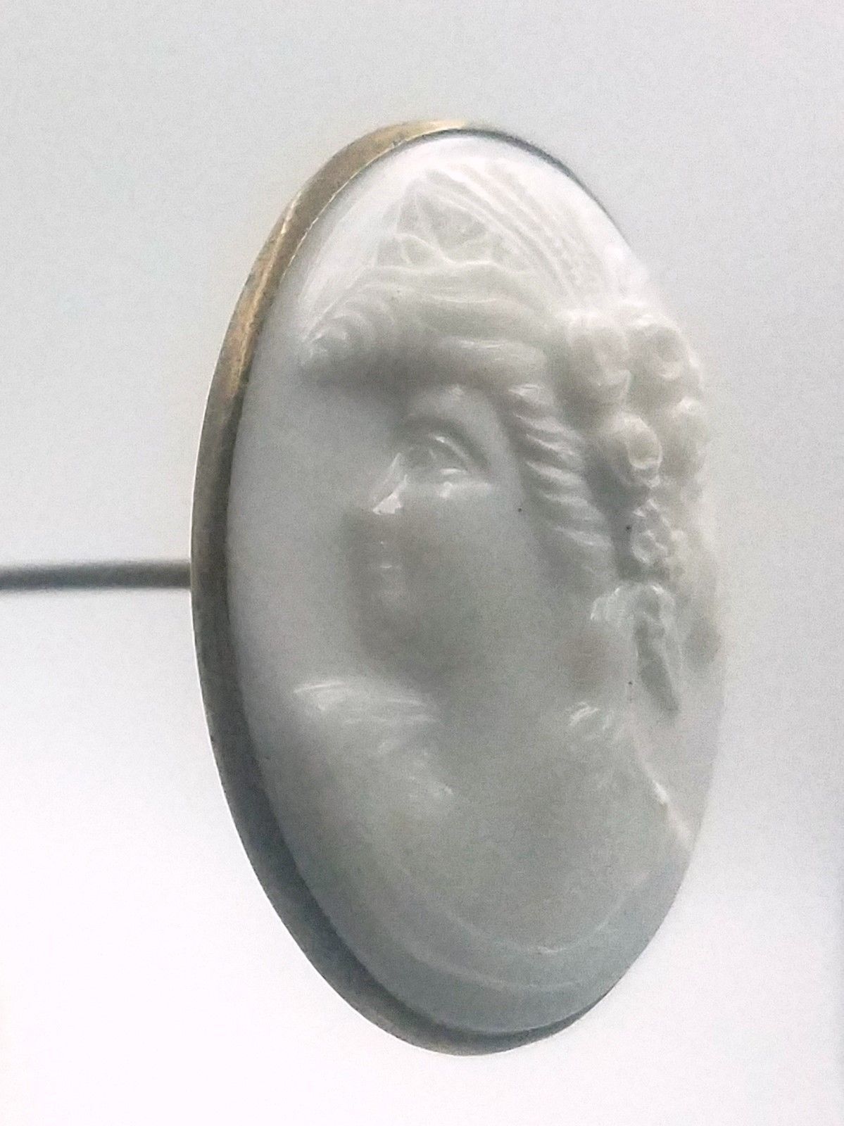 Title (ebay affiliate link): Antique Victorian Edwardian Hatpin White Milk Glass Profile of a Lady Cameo