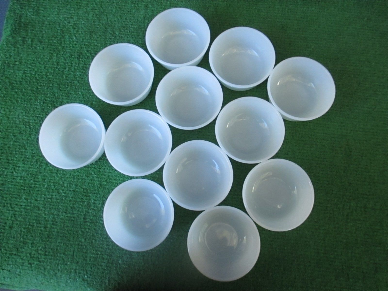 VINTAGE ANCHOR HOCKING MILK GLASS CUSTARD CUPS - LOT OF 12 - #434 - 6 OZ. CAP.