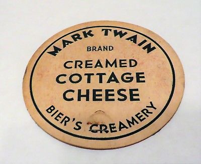 Title (ebay affiliate link): Vtg. 4" Milk Glass Bottle Cap MARK TWAIN creamed cottage cheese BIER''S CREAMERY