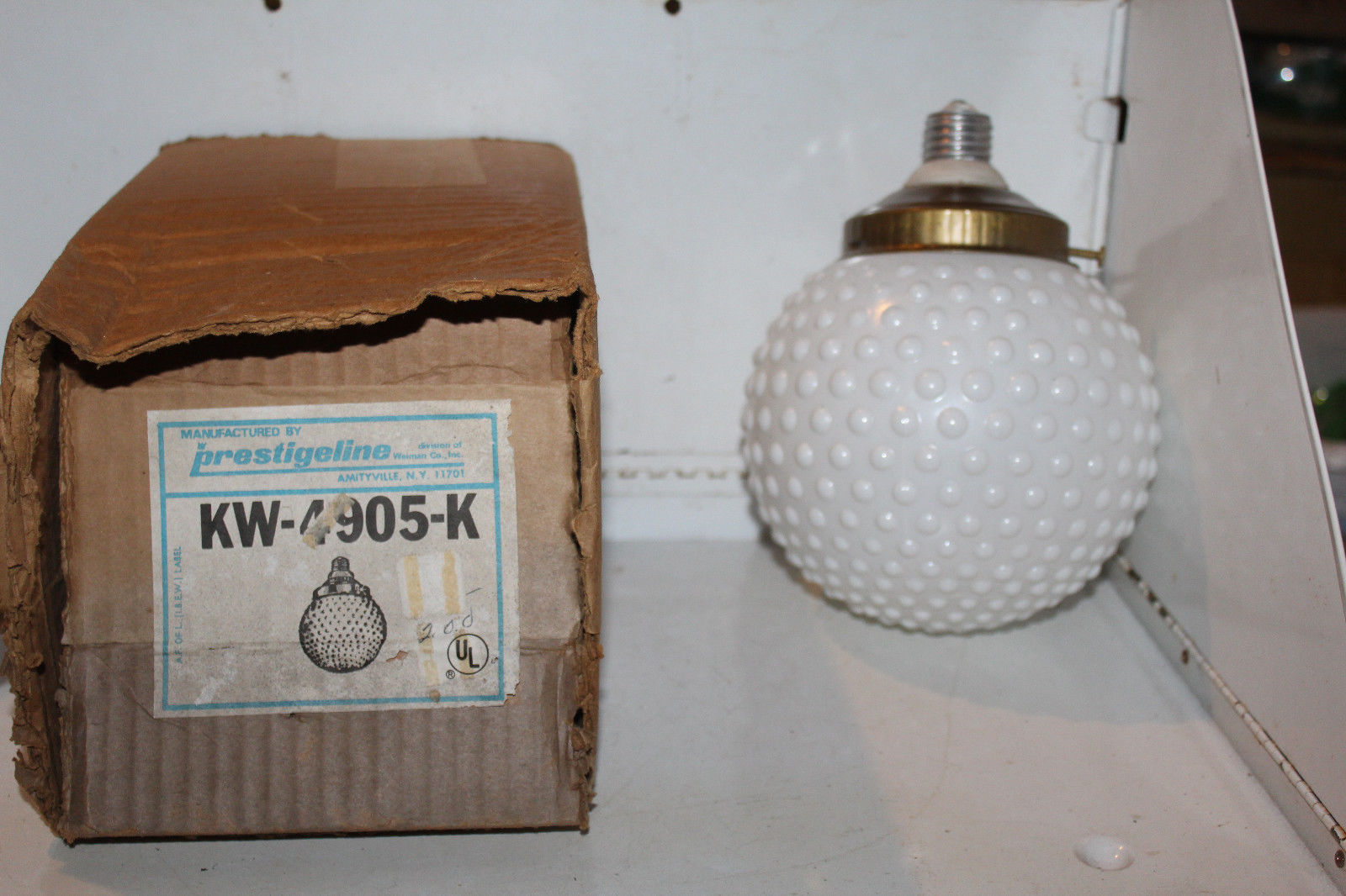 Vintage NOS Prestigeline KW-4905-K Milk Glass Hobnail Light Shade Cover Rare