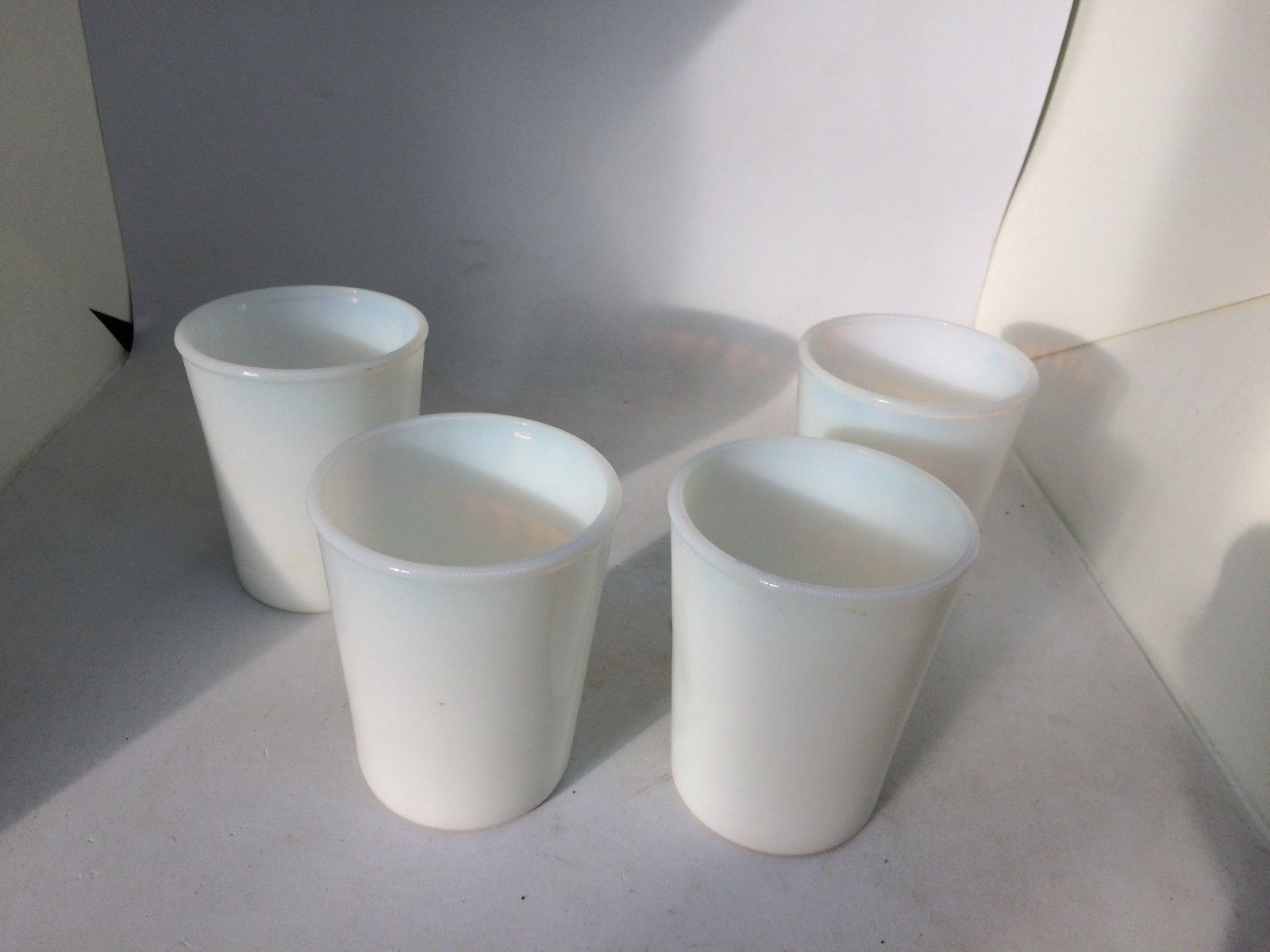 Vintage Opalescent Milk Glass Tumblers Hazel Atlas Drinking Glasses Set of 4